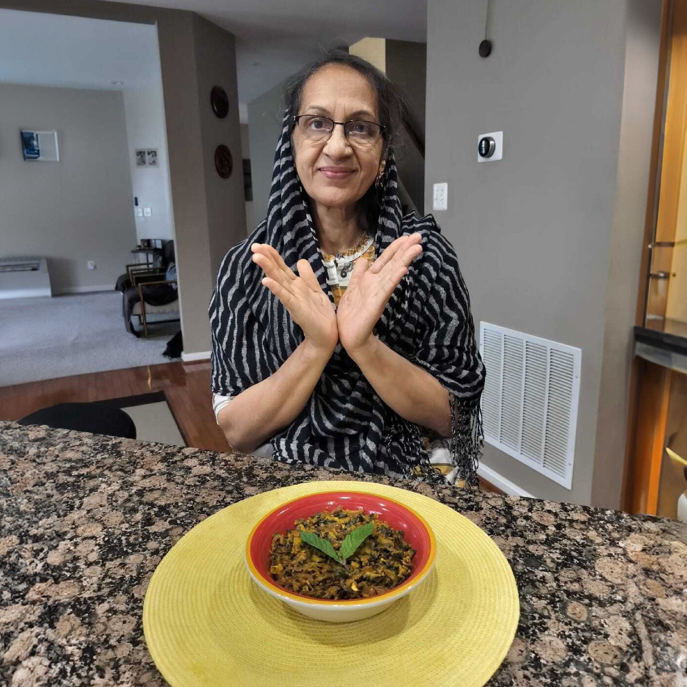 Wash 3 karelas, remove seeds, cut thin slices, add salt, leave for 5 min. Press and remove water. Heat 1 tbsp oil, sauté karela for 5-7 min, leave aside. Take 1 tsp oil, add 1 med sliced onion. Sauté till translucent. Add a pinch of haldi, 1 tsp red chili powder, 2 tsp dhania jeera powder, salt to taste. Add karela, sauté for 2 min on slow flame. Add 1 1/2 tsp jaggery. Sauté for a few seconds and enjoy.