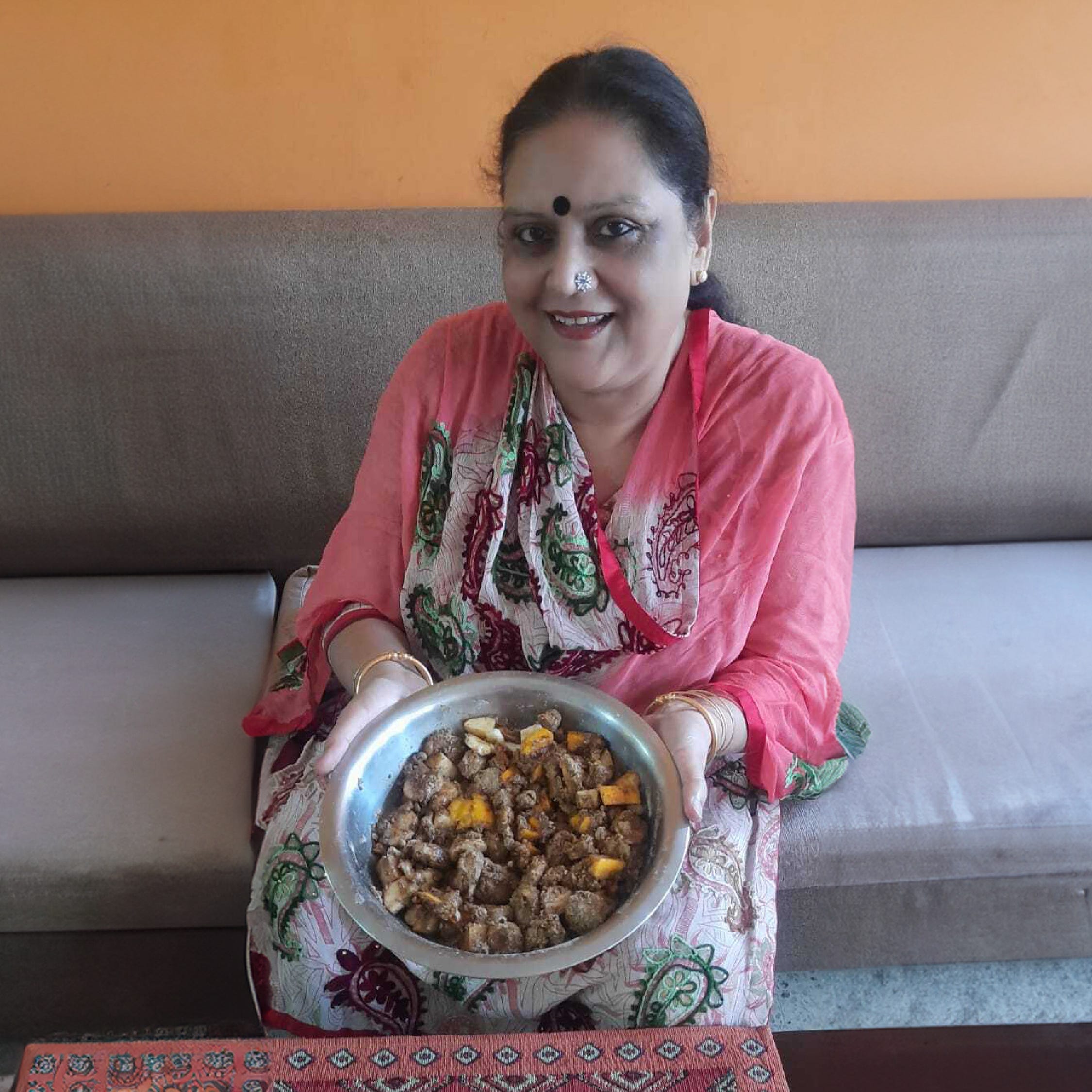 3. Add the Mango pieces to the Masala and mix thoroughly (few pieces at a time).